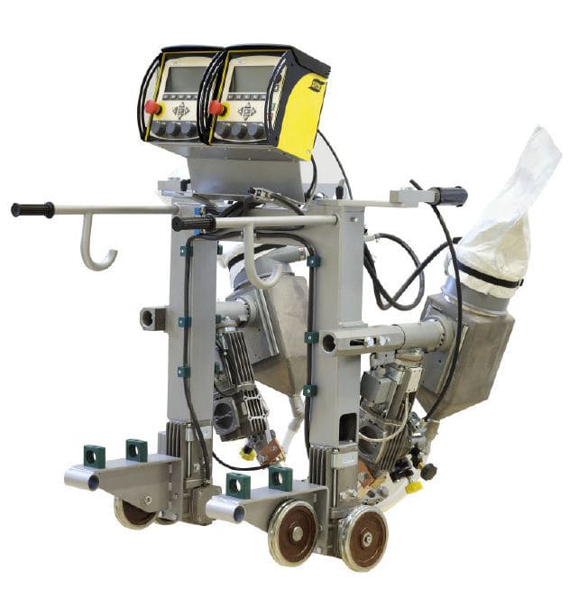Сварочный трактор A6-DK с двумя сварочными головками. Он выполнен из компонентов системы А6.
